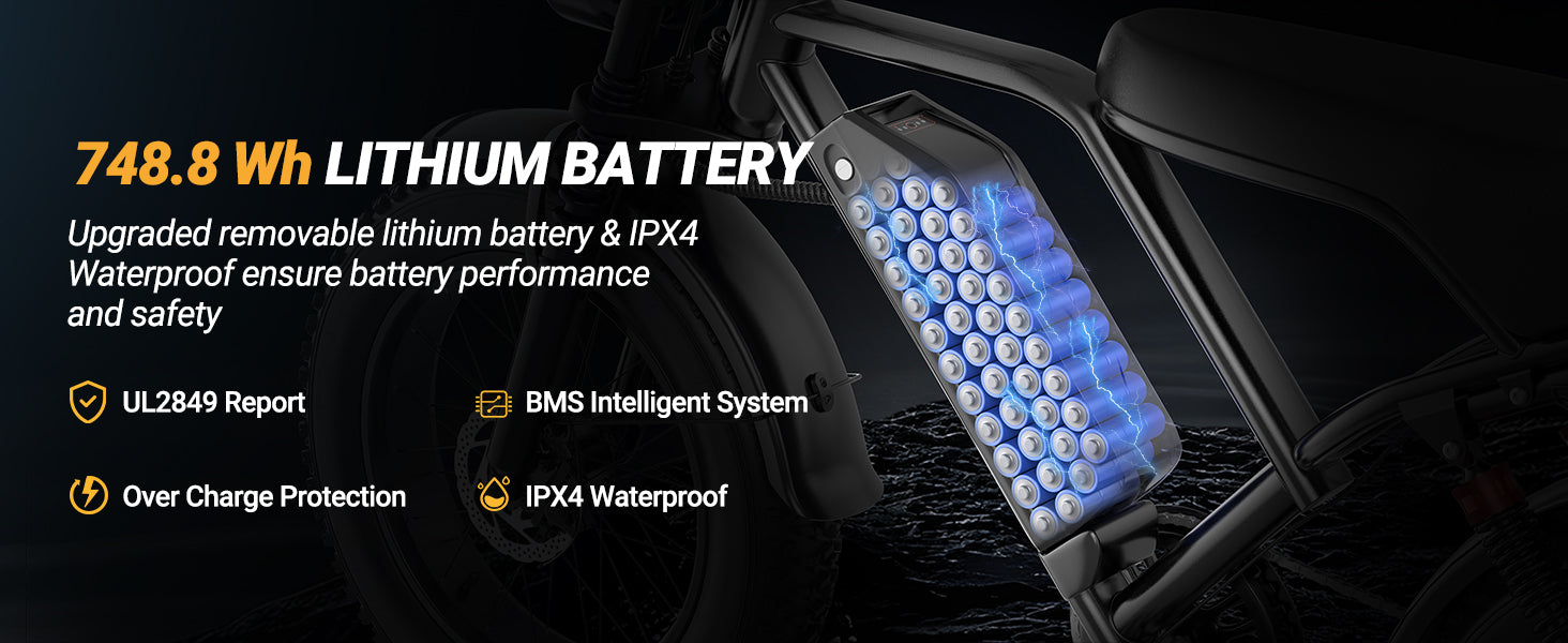 Peak Power 1500W, Full Suspension, Top Speed 31 MPH, Range 40-70 Miles, 48V 18Ah Removable Battery, 2-Seater Design, LED Headlights, 20-Inch All-Terrain Fat Tires, UL 2849 Certified.