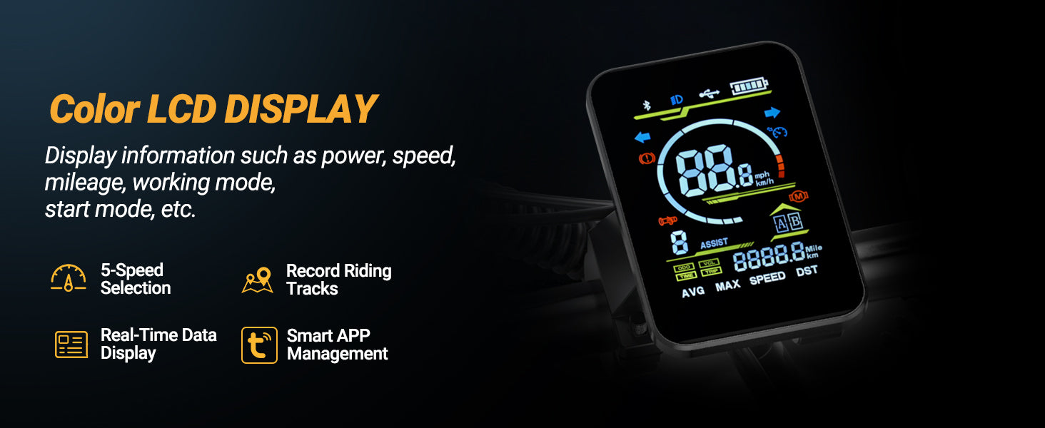 • 【5 SPEED LEVELS】--Adult electric bicycles has big smart LCD display,All parameters and functions are clearly visible on the screen,there are 5 SPEED LEVELS,Speeds from 6 mph to 31 mph,the speed range of each gear can be customized in the APP.