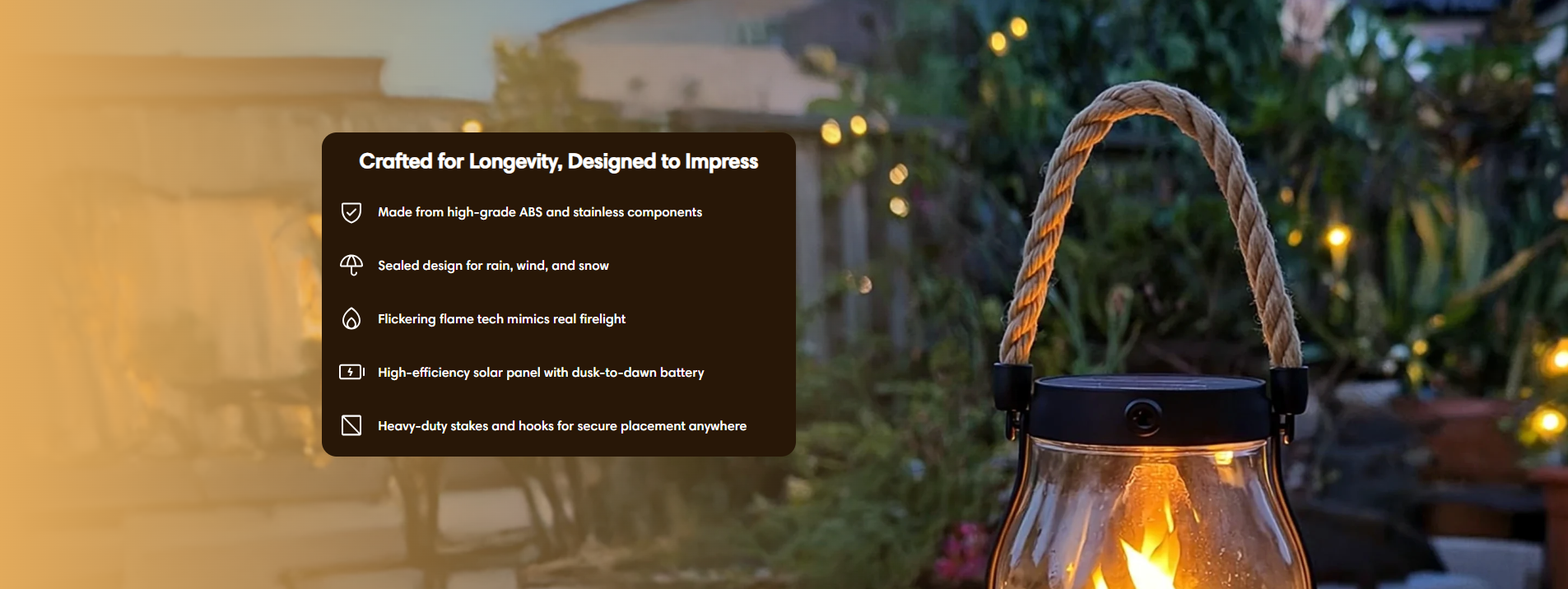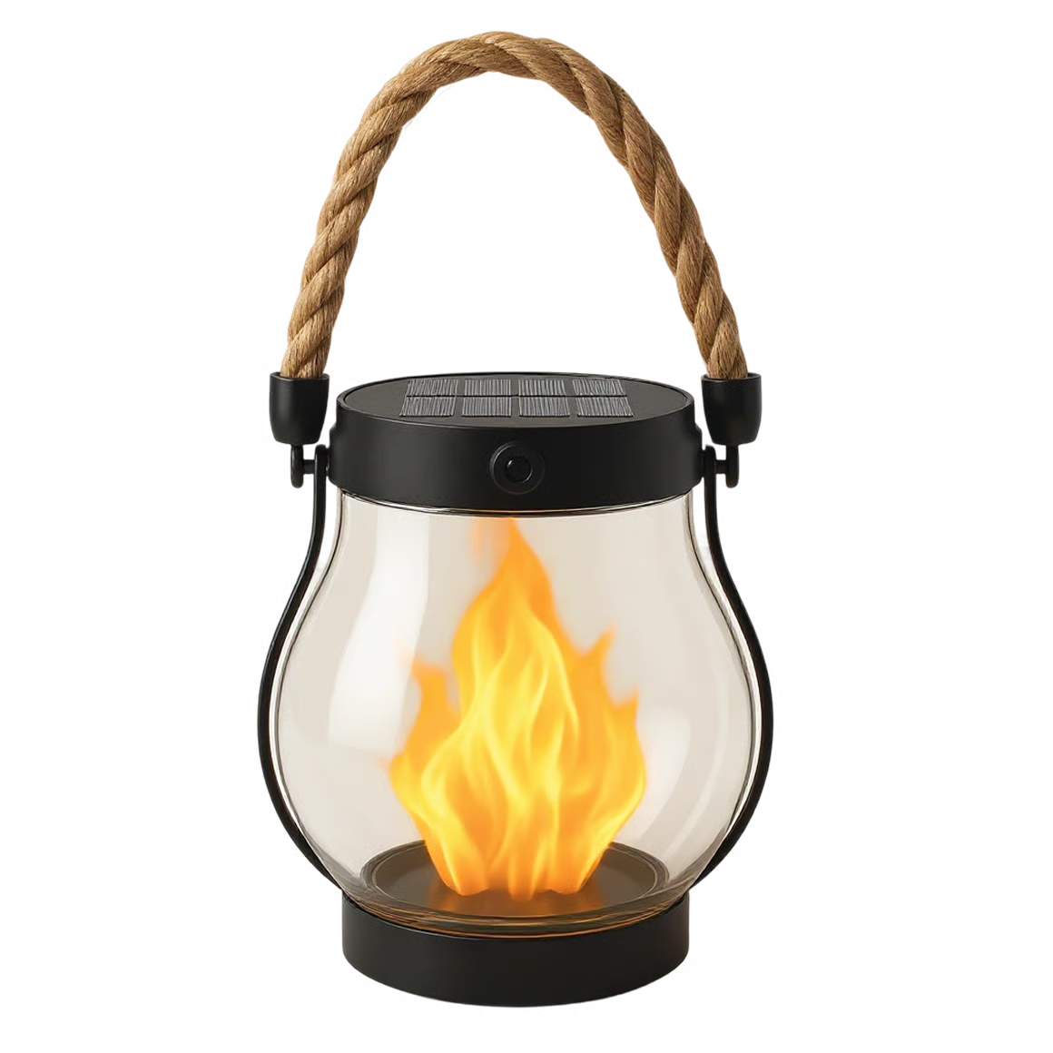 No — this solar lantern uses a high-tech LED that flickers just like a real flame. You get the cozy vibe without the fire, heat, or risk.